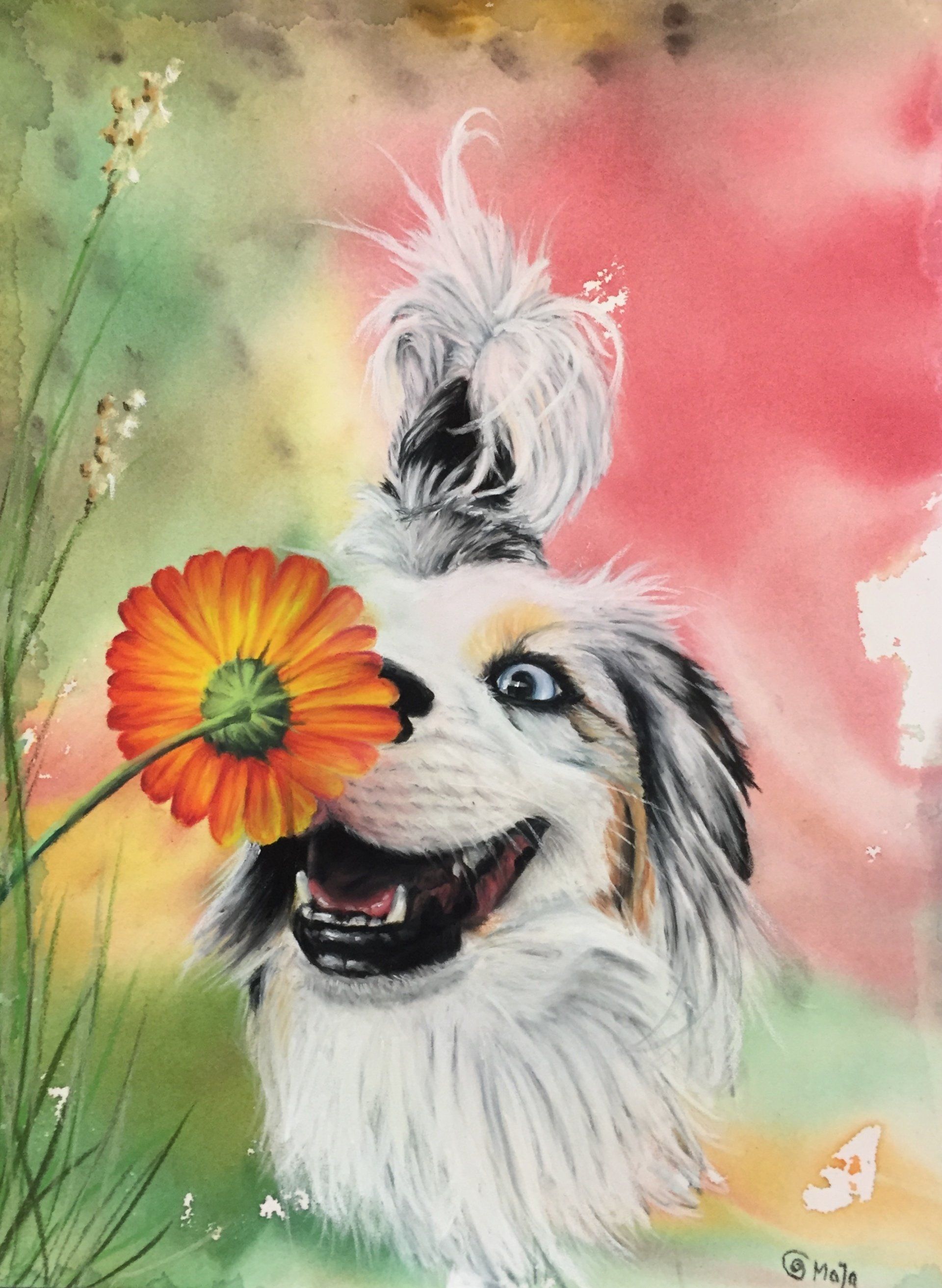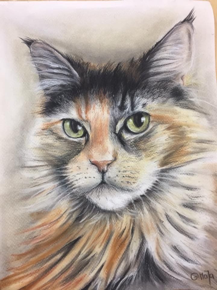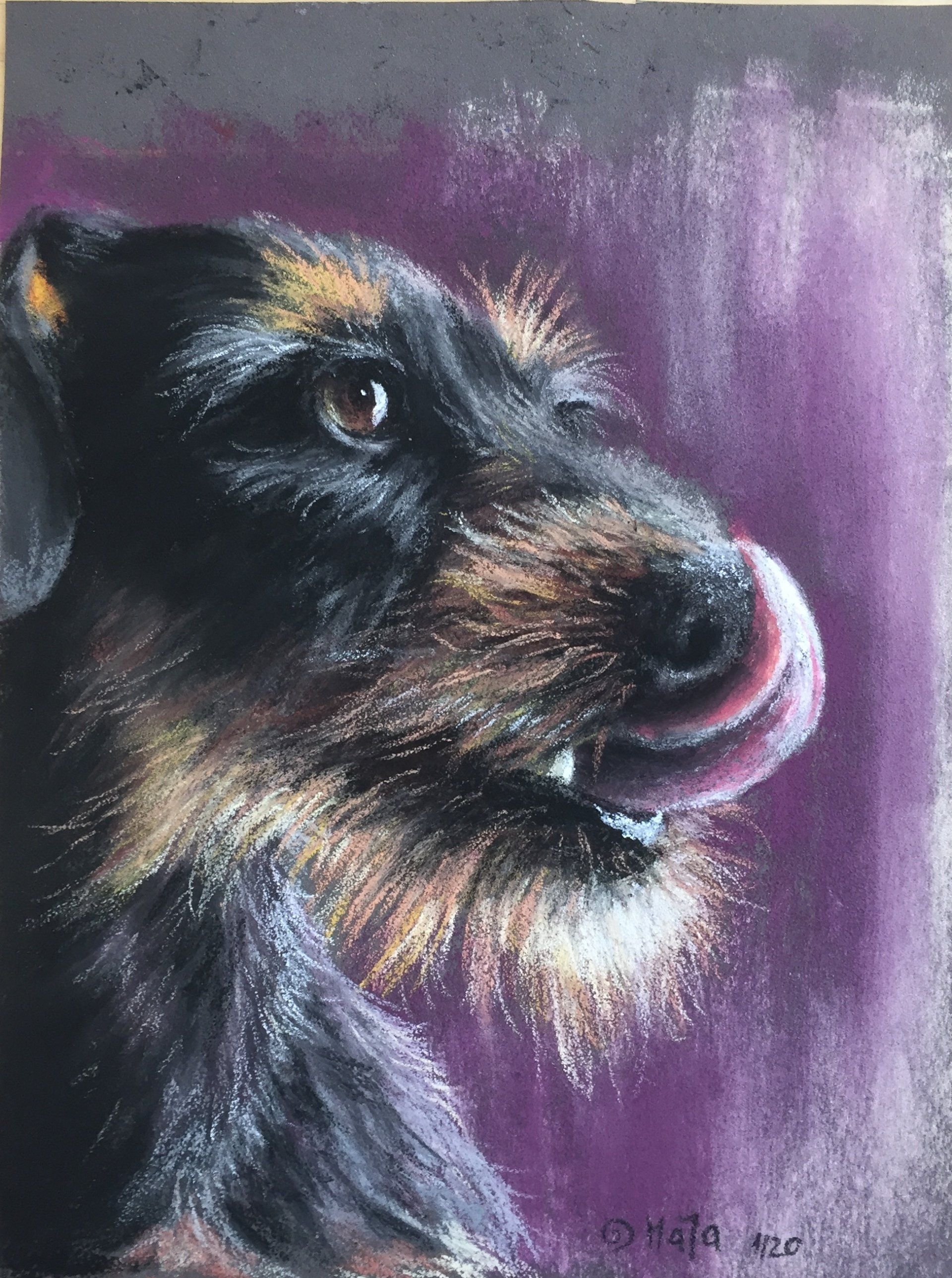 Ich arbeite überwiegend Portraits von Menschen oder Tieren in den Techniken Acryl und Pastell .