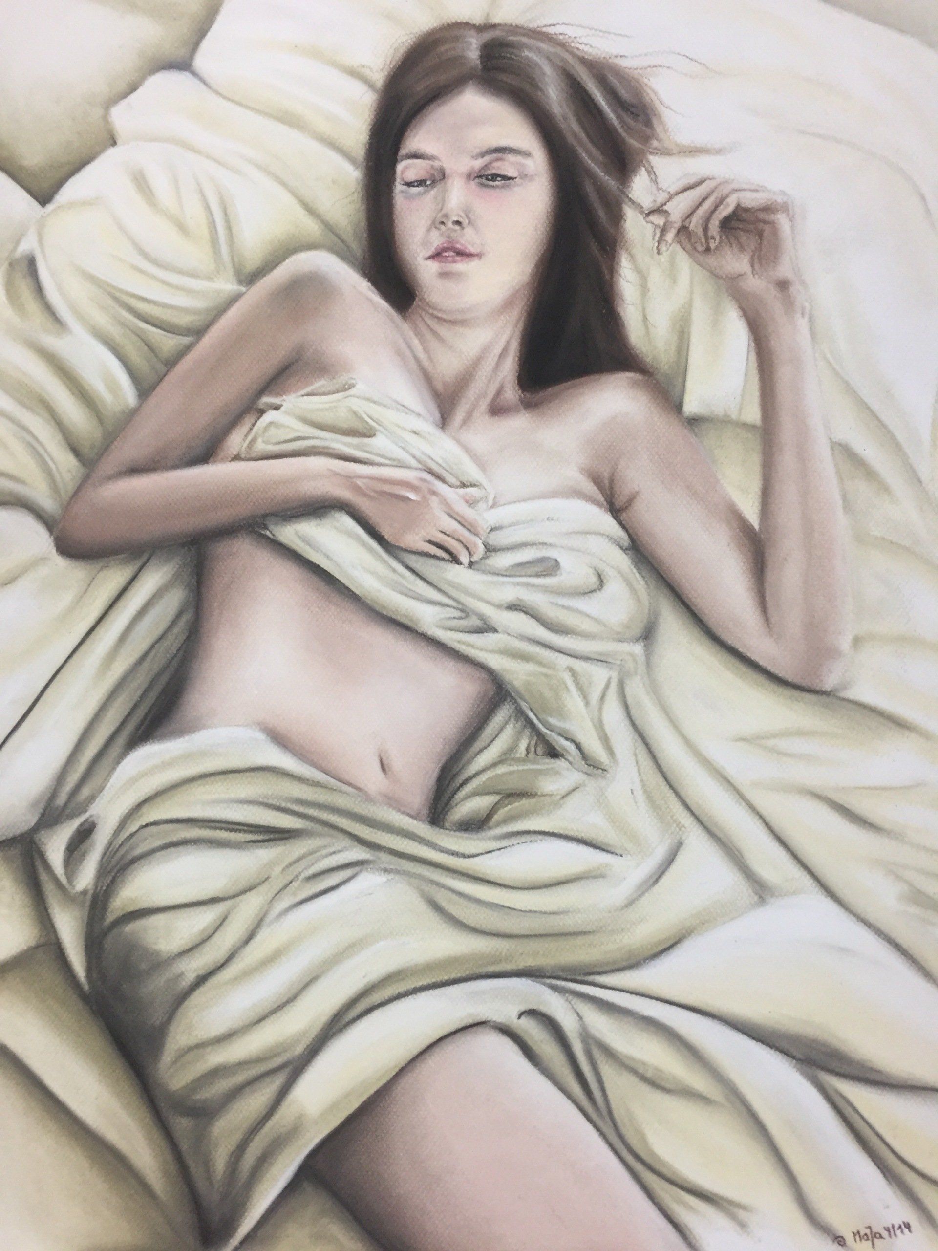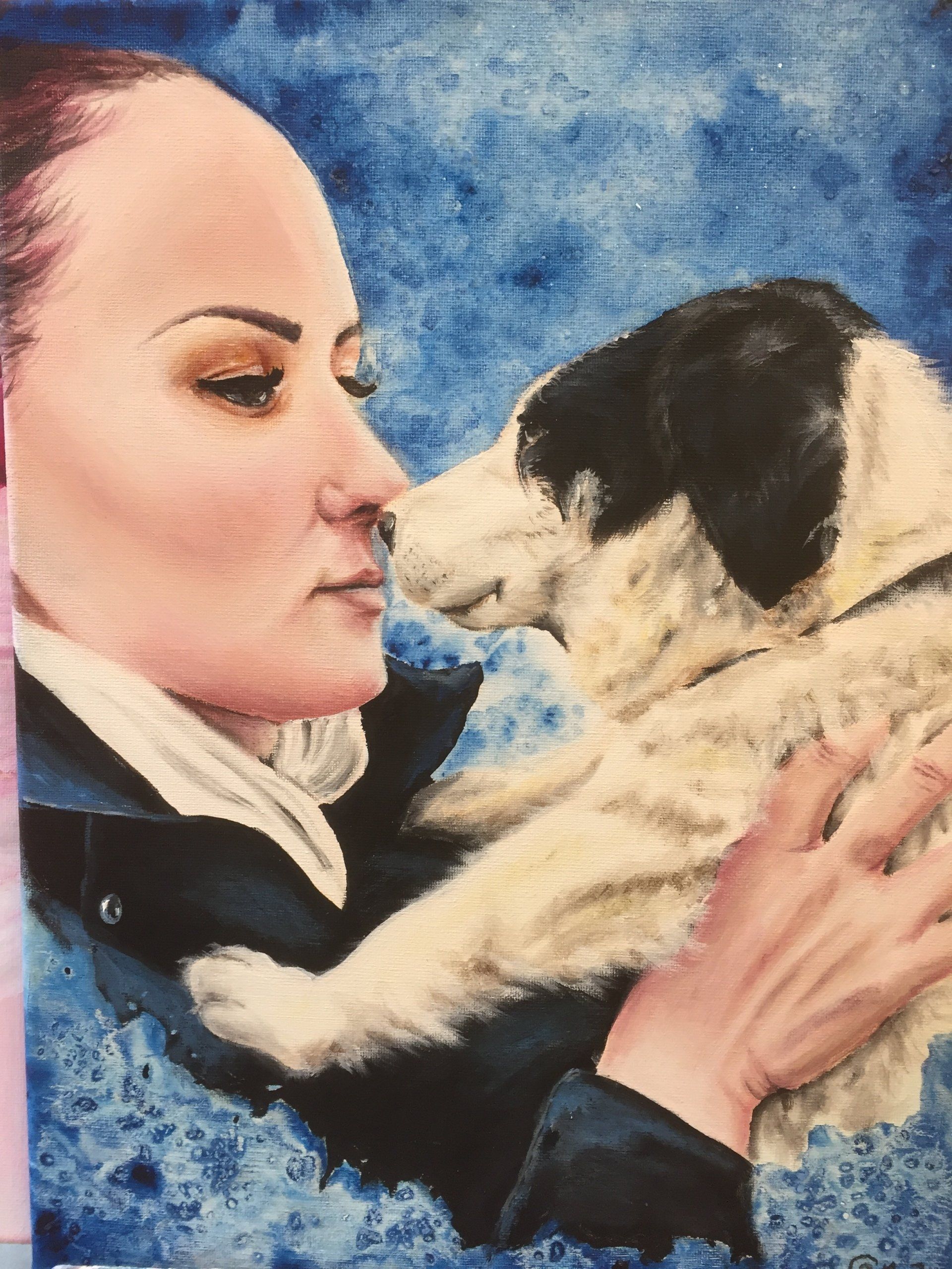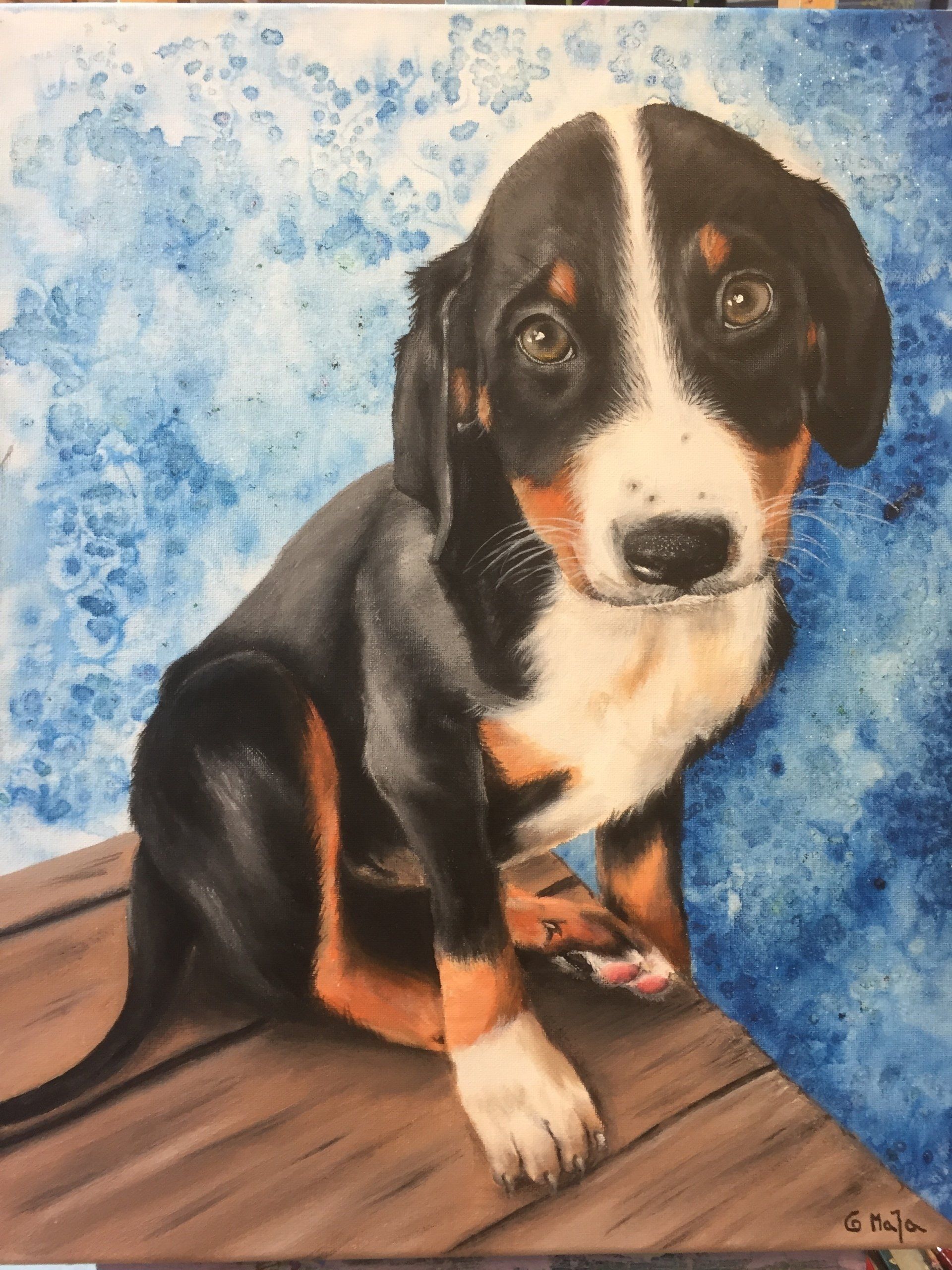 Ich arbeite überwiegend Portraits von Menschen oder Tieren in den Techniken Acryl und Pastell .